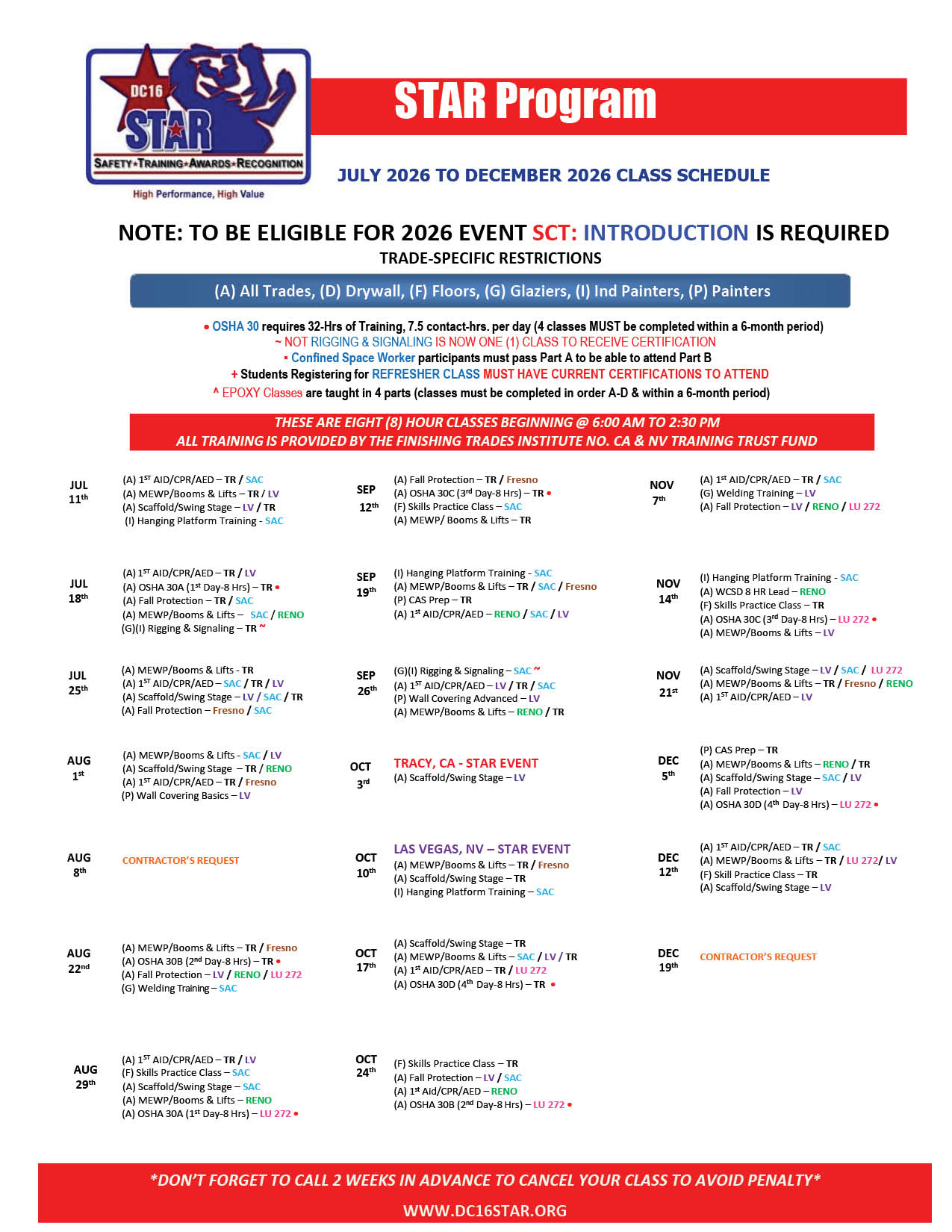 For eligibility to the 2024 STAR Awards Event SCT: Introduction to District Council 16 and the Finishing Trade Associations is the REQUIRED class
